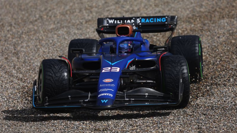 That slick-tyre gamble would soon backfire for Sargeant, though, with the Williams driver losing control of his car at the still-damp entry to the high-speed Turn 2 and slamming into the barriers, prompting an apology from the American as he confirmed that he was unharmed.