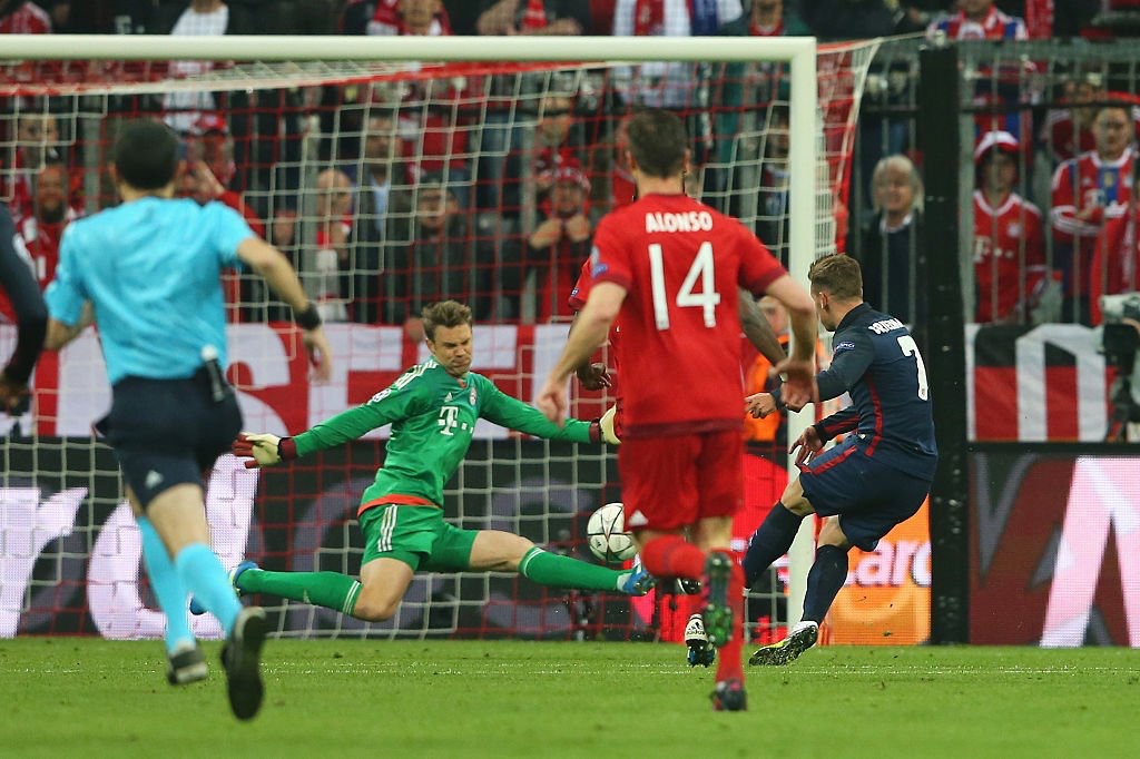 The second half started much like the first with Bayern enjoying most of the early chances. The momentum shifted nine minutes into the half when Antoine Griezmann headed the ball down to strike partner Fernando Torres. Torres played a splitting through ball which left the Bayern defence for dead. Griezmann raced forward and opened his body up before finessing the ball past Manuel Neuer. Replays were inconclusive as to whether or not the Frenchman was on or offside. The goal stood and Bayern now needed 2 goals to progress.