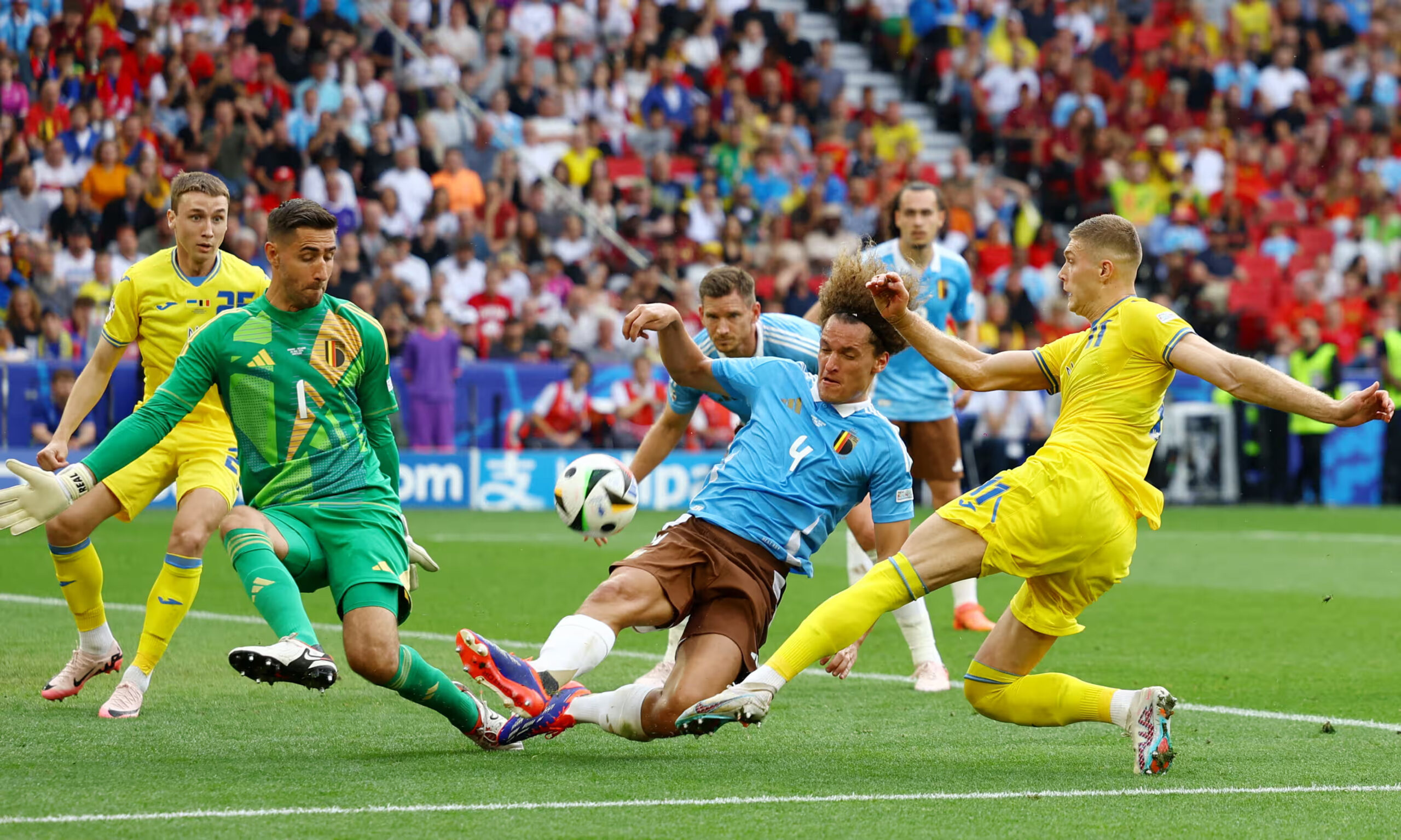 A sublime ball from Kevin De Bruyne split the Ukraine defence and played in Romelu Lukaku, but the former Chelsea and Manchester United striker could not make proper contact and his shot dribbled to goalkeeper Anatoliy Trubin.