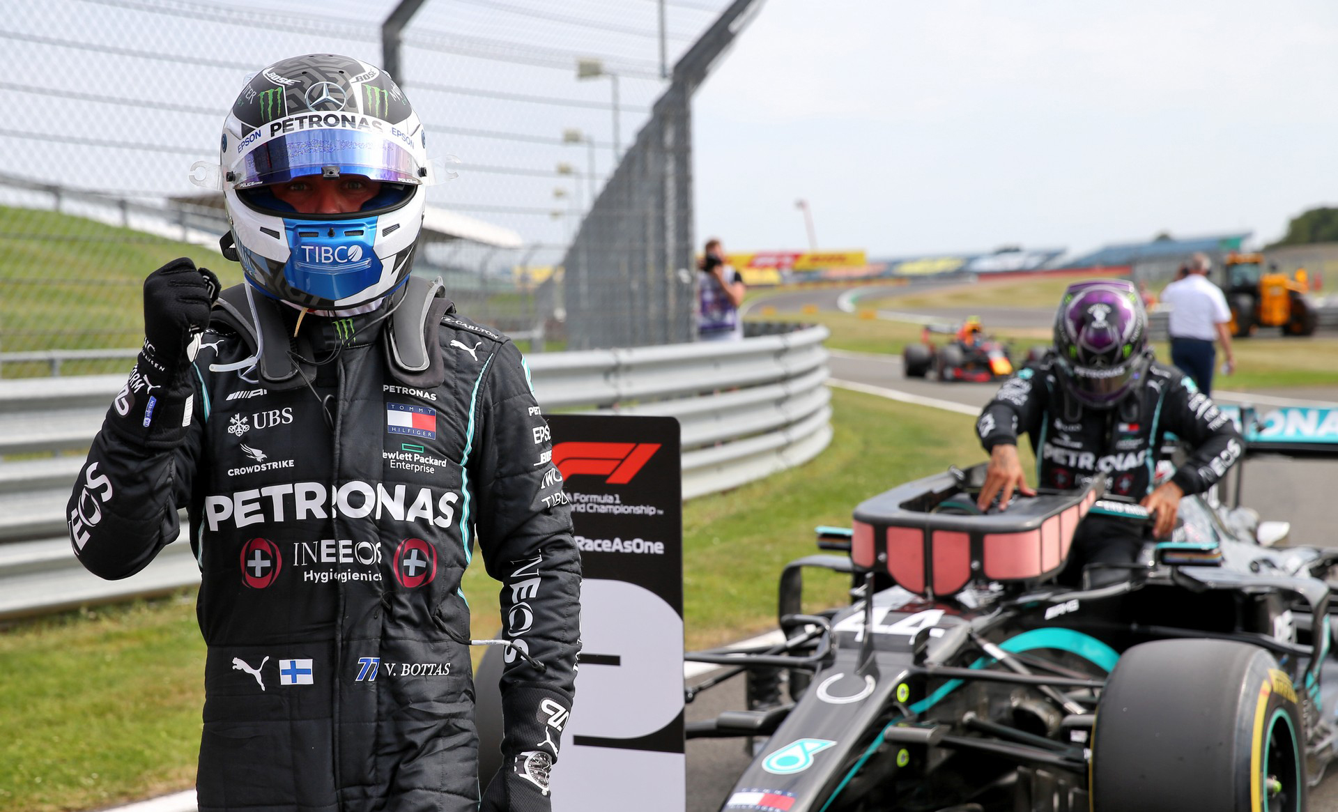 With a freshly inked contract extension in his back pocket, an inspired Valtteri Bottas got the bit between his teeth to beat Mercedes team mate Lewis Hamilton to pole position, as super sub Nico Hulkenberg took a remarkable third for the 70th Anniversary Grand Prix at Silverstone.