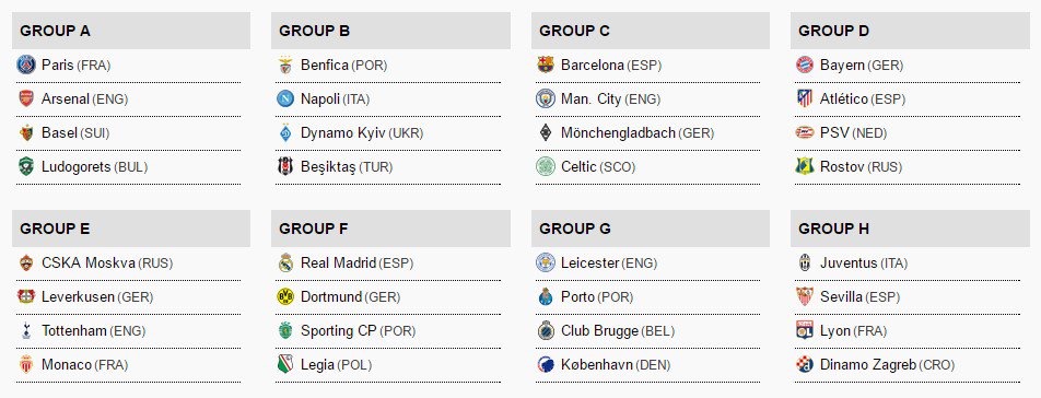 Bayern Munich led by Carlo Ancelotti face last year’s runners up Atletico Madrid in Group D. Dutch champions PSV and Russian side Rostov complete the group.