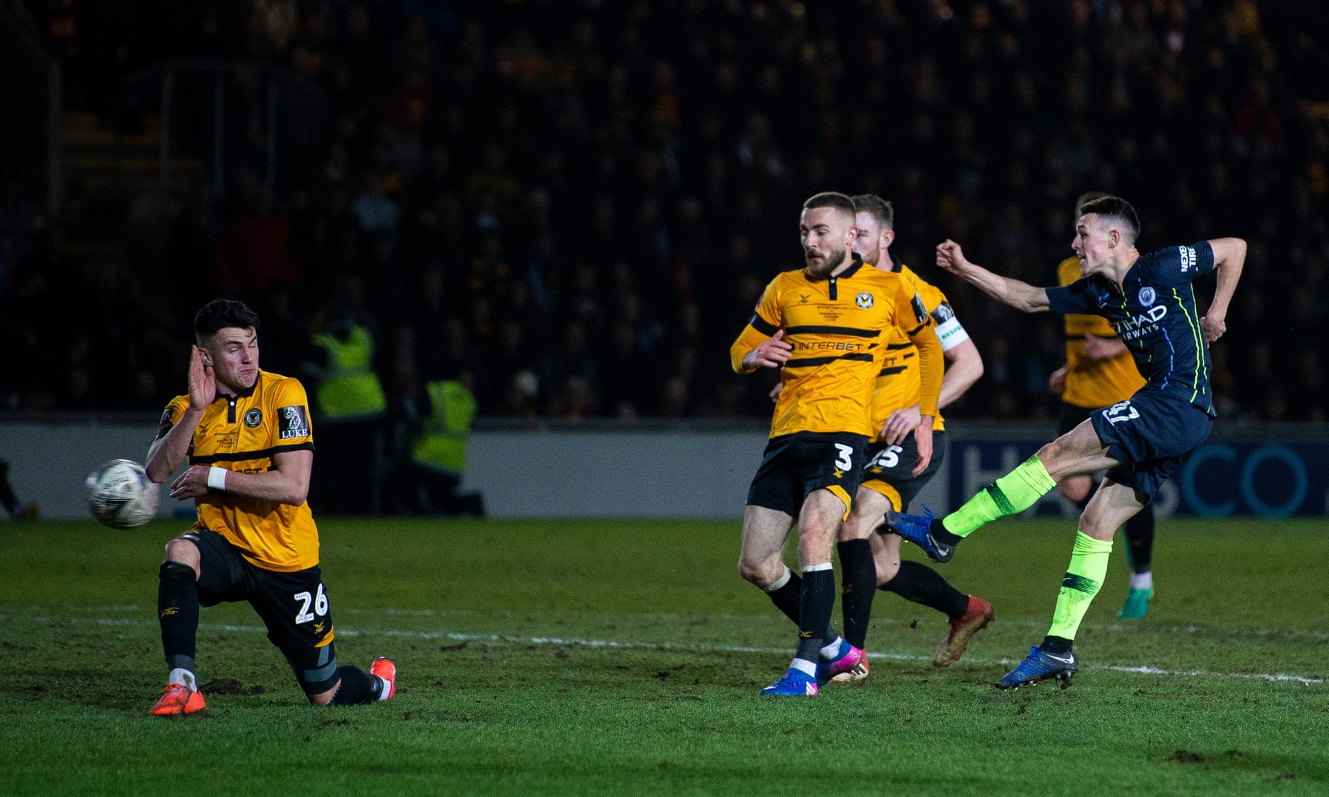 Former Sligo Rovers and Shamrock Rovers man Padraig Amond maintained his record of scoring in every round for Newport two minutes from time, but hopes of a dramatic comeback were brief as Foden’s second and Mahrez finished the job.