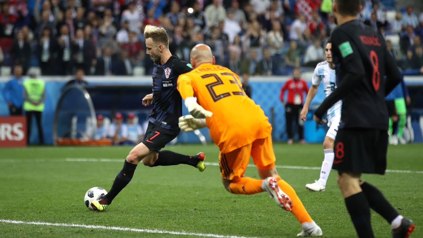 Ivan Perisic surged into space down the left and cracked a shot towards the bottom-right corner, which was superbly tipped around the post by Caballero – only starting in Russia due to a knee injury for regular number one Sergio Romero.