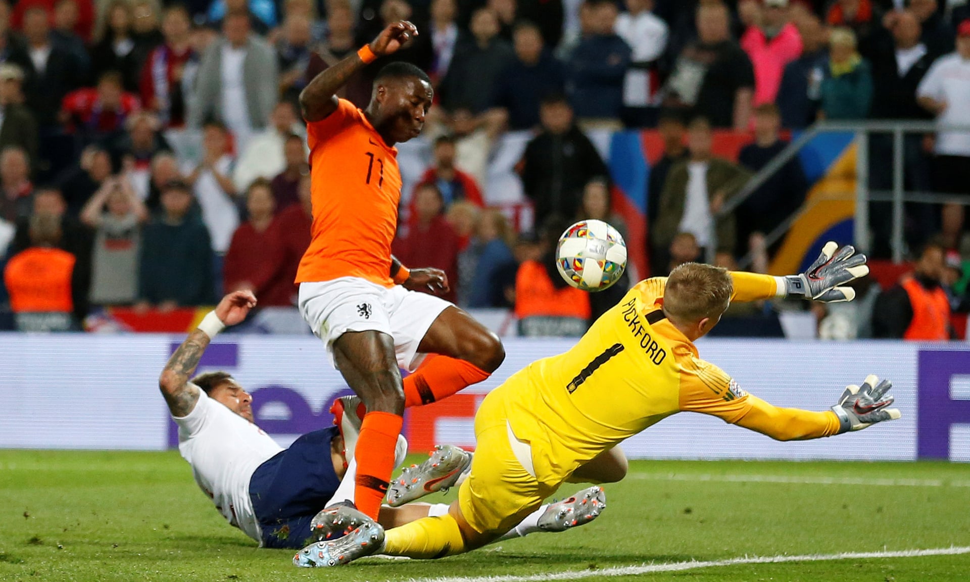 A dallying Stones was robbed by Depay and although Pickford made a fine save from his effort, Promes reached the rebound first and his off-target strike was deflected in by Walker.