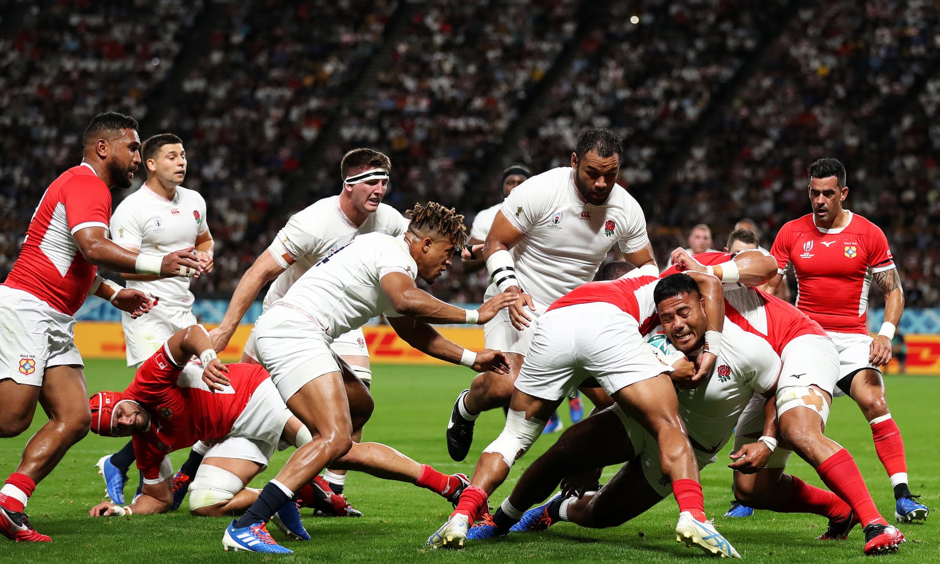 England had Manu Tuilagi to thank for setting up victory against Tonga with two tries in seven minutes under the roof in Sapporo. But they had to wait until four minutes from time to secure a bonus point through Luke Cowan-Dickie.