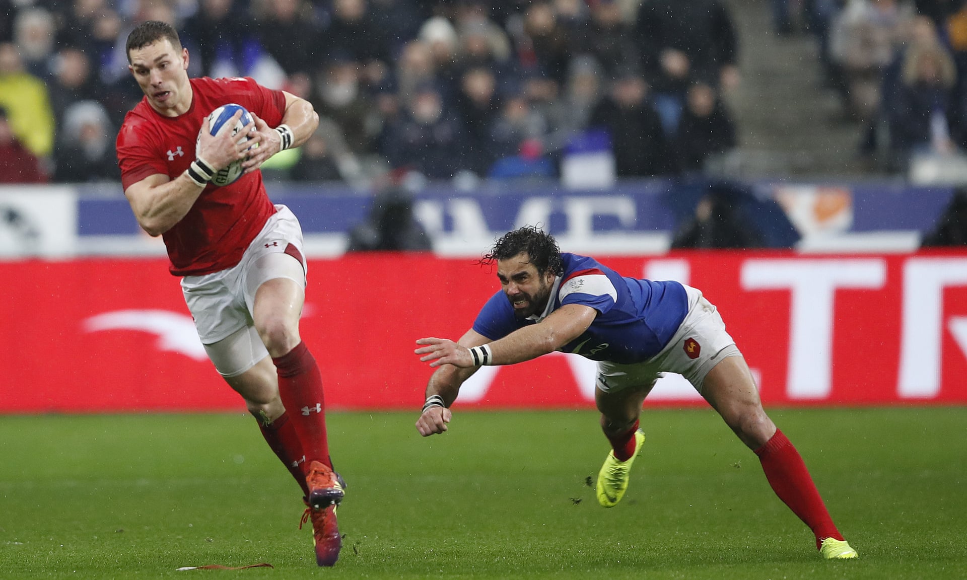 And while Shaun Edwards’ much-vaunted Welsh defence was not breached for a third time in the first half, the boot of Camille Lopez extended the hosts’ advantage.