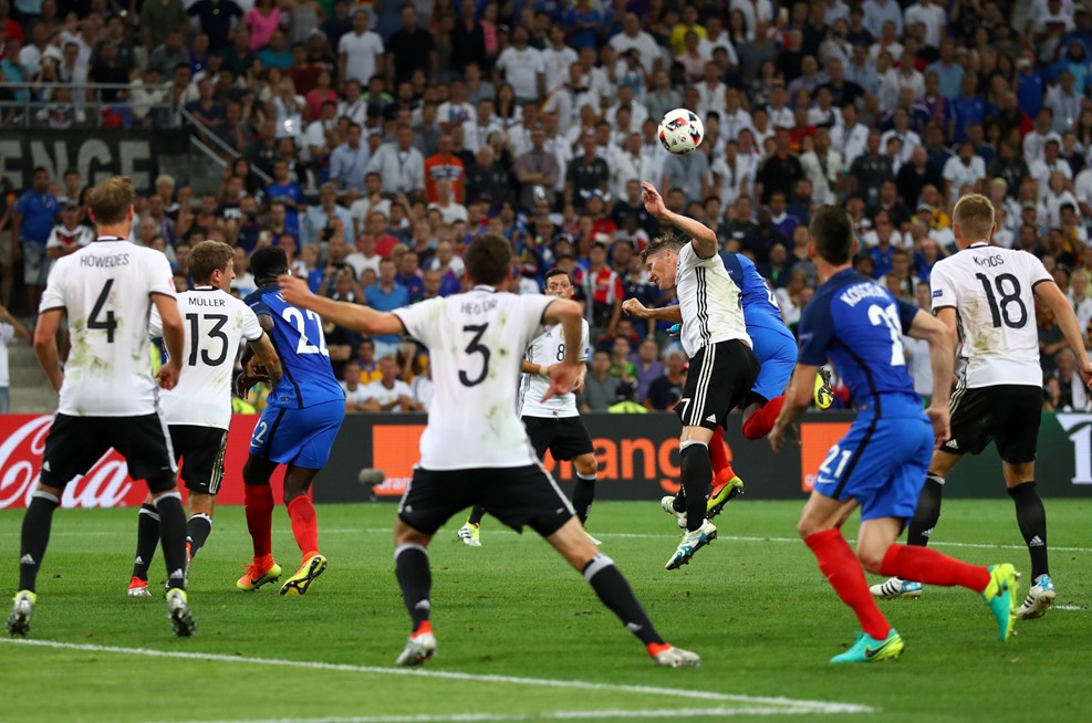 Deschamps’ side started the second half in confident fashion with Moussa Sissoko picking out Giroud, but the striker’s shot was expertly blocked by Jerome Boateng. Seconds later, Griezmann went close again after combining with Giroud in the penalty area and the former’s shot was deflected over the crossbar. Germany were still seeing plenty of the ball but in the absence of the injured Gomez, they were struggling for a cutting edge in the final third with Laurent Koscielny and the impressive Umtiti defending resolutely. Germany were forced into a change in the 61st minute when Shkodran Mustafi replaced the injured Boateng and Joachim Low was soon calling for attacking reinforcements with Mario Gotze coming on in place of Can. But it was France who extended their lead and it was thanks to two Germany errors, the first by Kimmich and the second by Neuer, that handed Griezmann his second. Kimmich gave the ball away inside his own box, before the Bayern Munich goalkeeper punched Pogba’s cross only to see the ball fall to Griezmann who made no mistake from close range.
