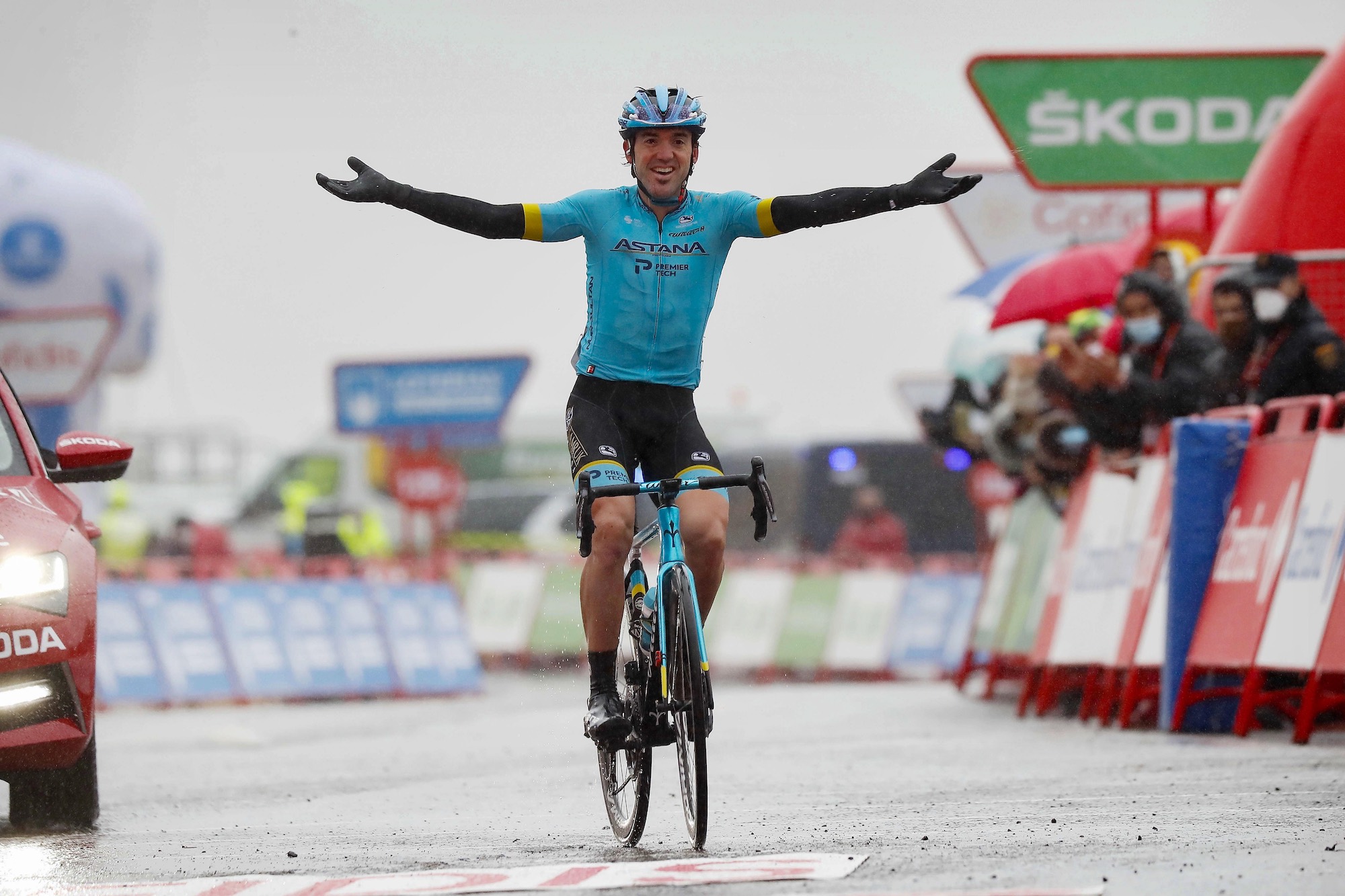 Ion Izagirre (Astana) took the stage victory after attacking from the remnants of the day’s huge breakaway in the final 3km of a rain-soaked climb to Formigal.