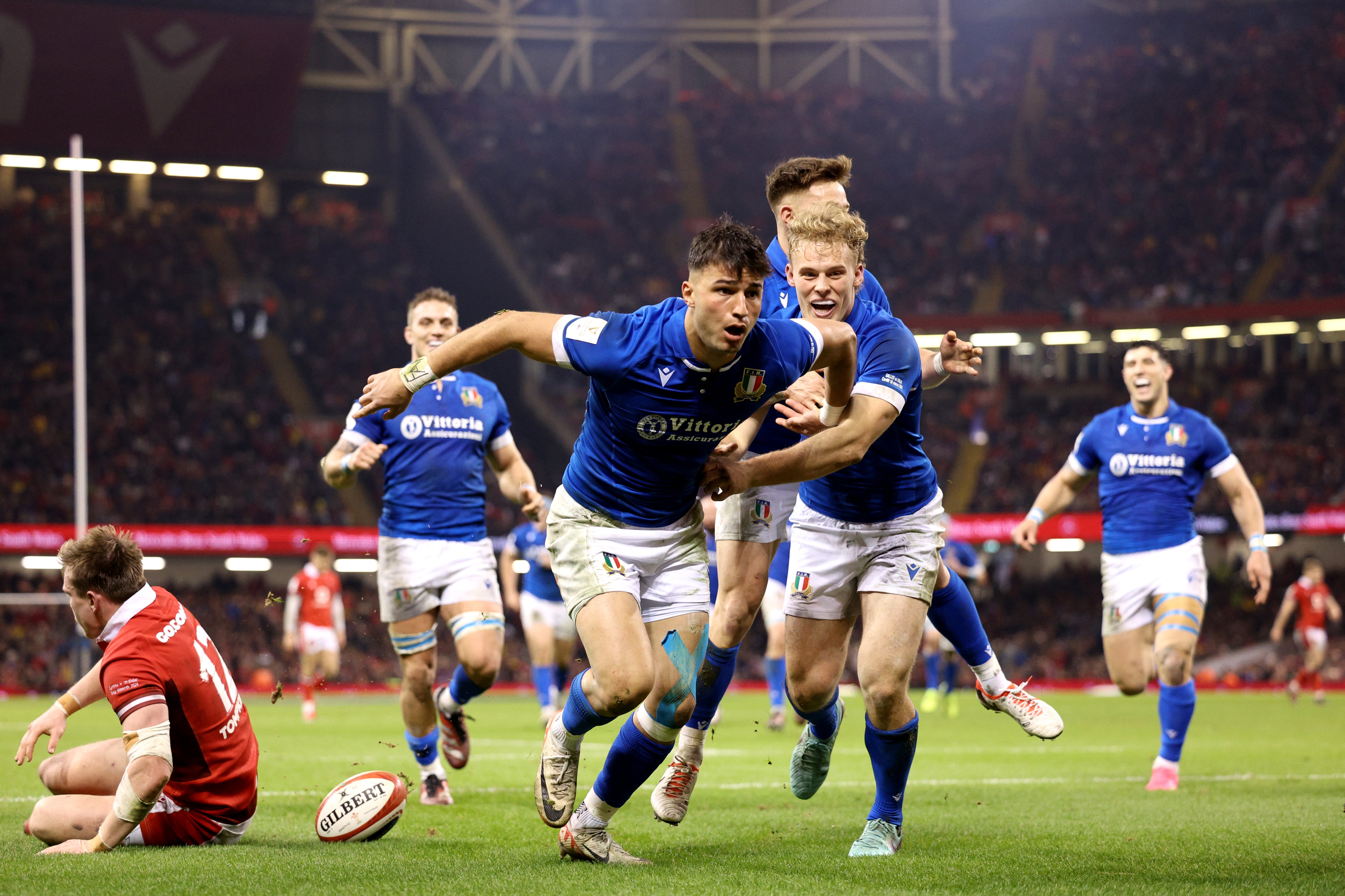 After pushing Wales closer and closer to their own try line, a try for the Italians began to feel inevitable. It arrived when Juan Ignacio Brex’s deft pass to Garbisi allowed his fly-half time to pick out Monty Ioane, whose line cut the Welsh defensive line and add saw him dive over for his 13th Test try.