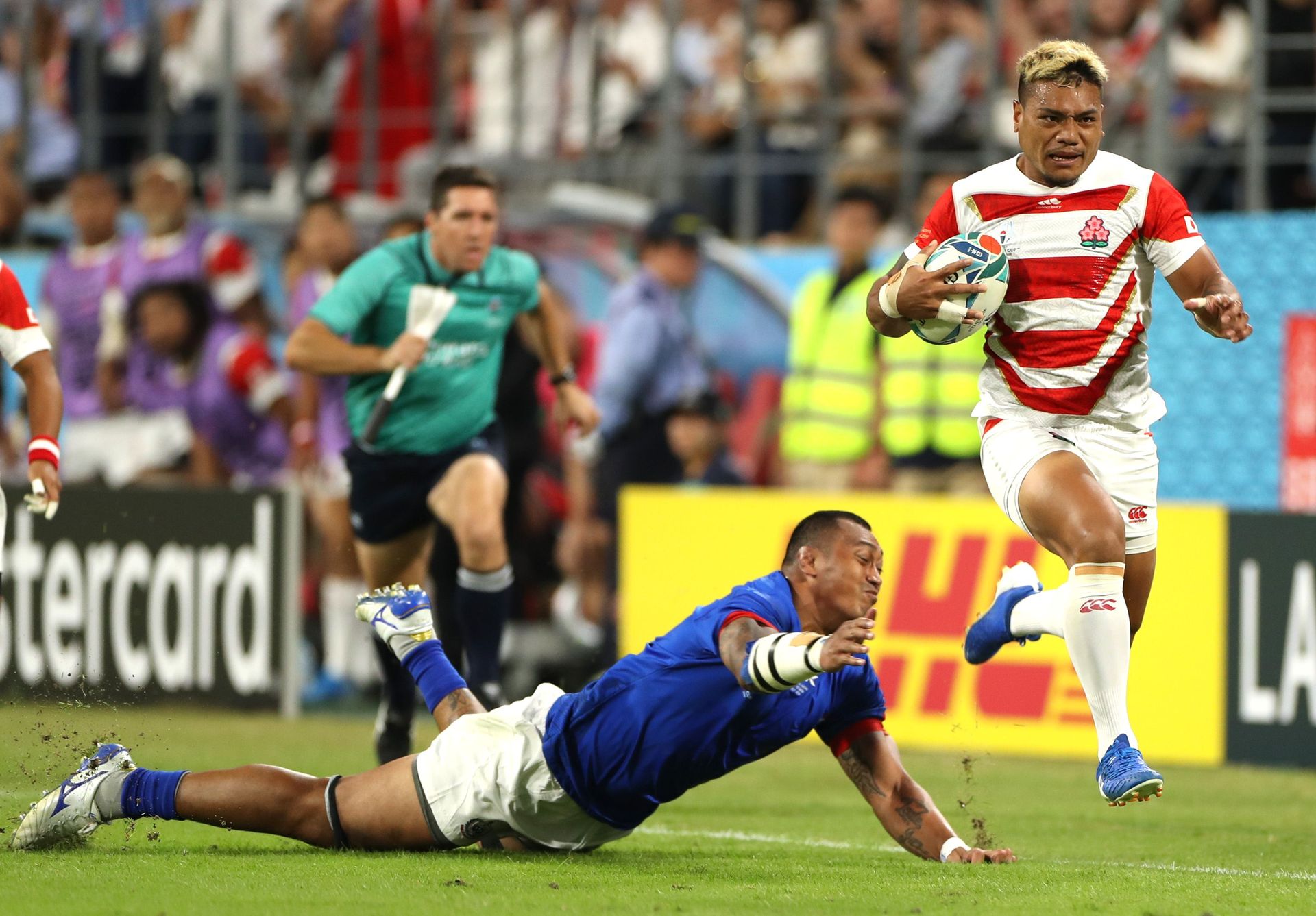 Samoa forced a raft of penalties inside Japan’s 22 and Taefu’s try, with eight minutes left, brought them back within range. Taefu scored all 19 of Samoa’s points.