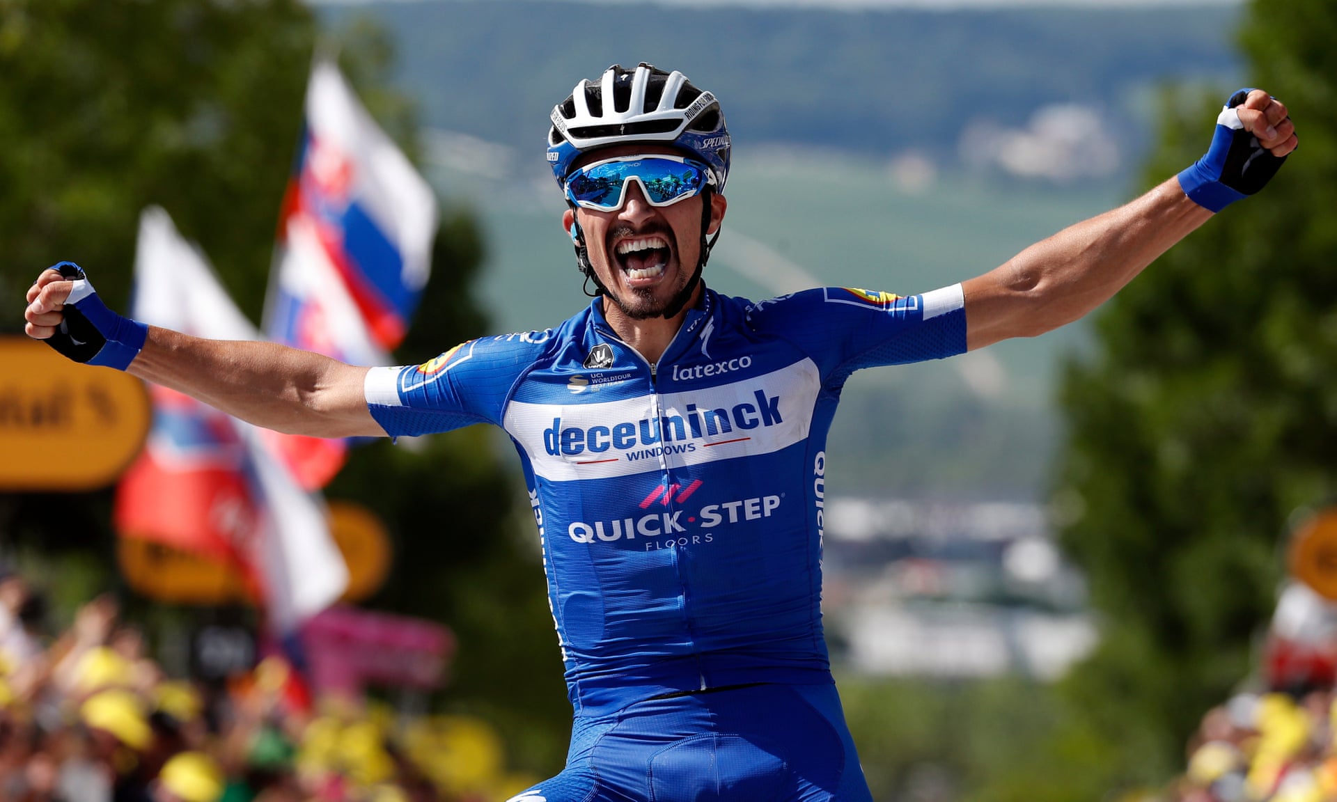 Alaphilippe, the livewire from Deceuninck-QuickStep, zipped clear of the peloton on the last of four categorised climbs to pass escapee Tim Wellens of Belgium with 16km remaining before riding to glory in the capital of Champagne.