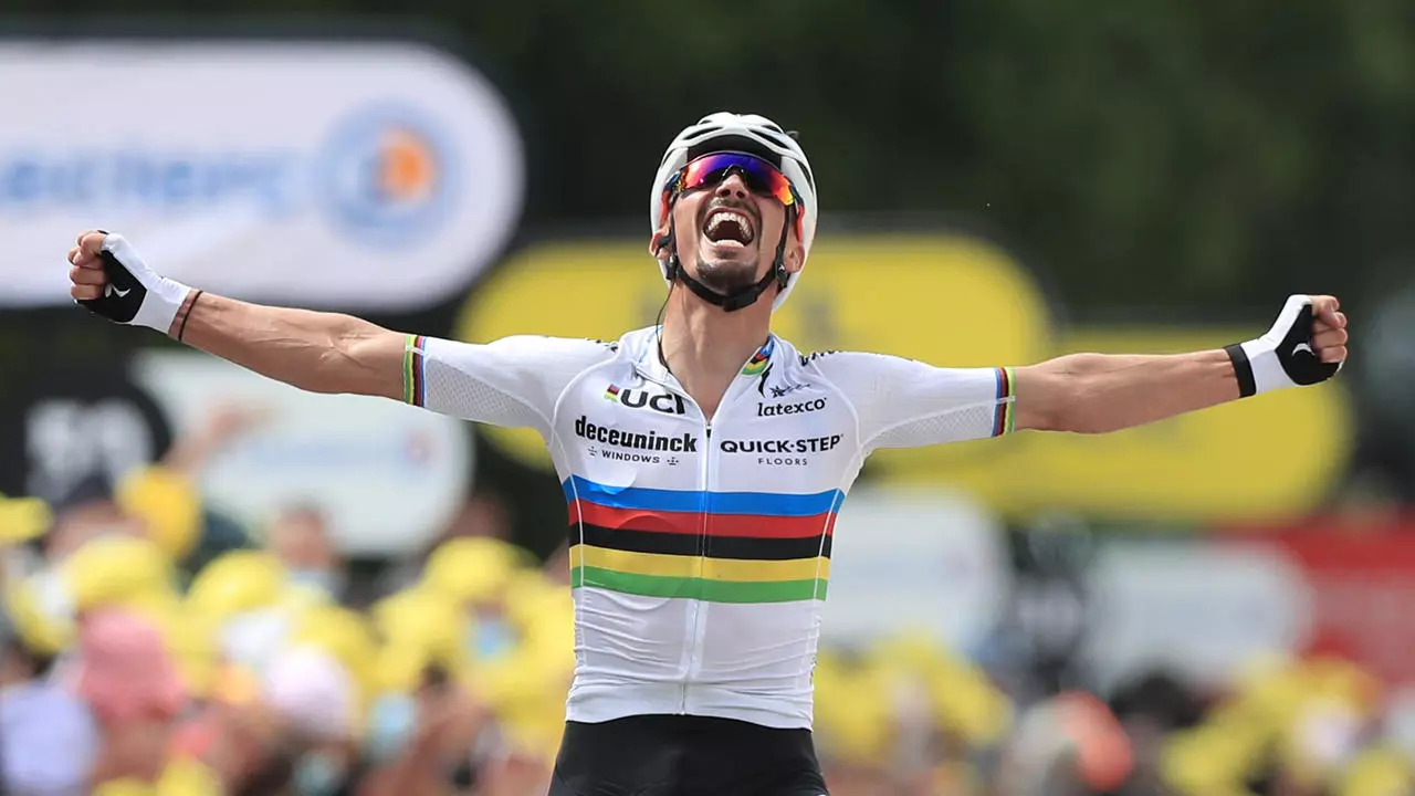 And despite last year’s yellow jersey protagonists – the Slovenian’s Tadej Pogacar and Primoz Roglic – leading the chase, Alaphilippe’s bold early move paid off as the 29-year-old added another huge win to his swelling palmares, days after becoming a father for the first time.