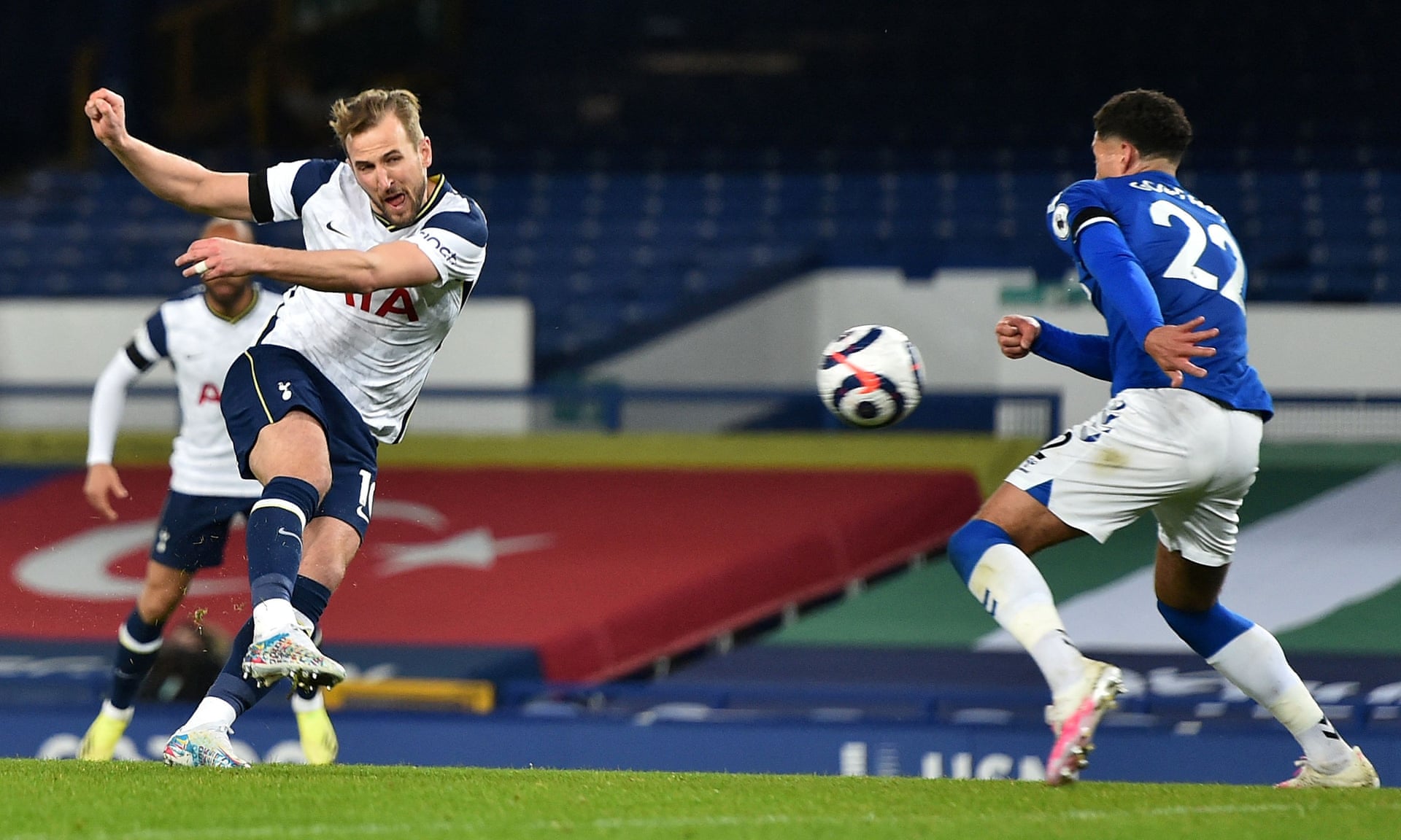 Spurs took the lead with their first foray into Everton’s box as Kane was clinical. Mason Holgate missed Tanguy Ndombele’s cross and Kane controlled and fired into the bottom corner.