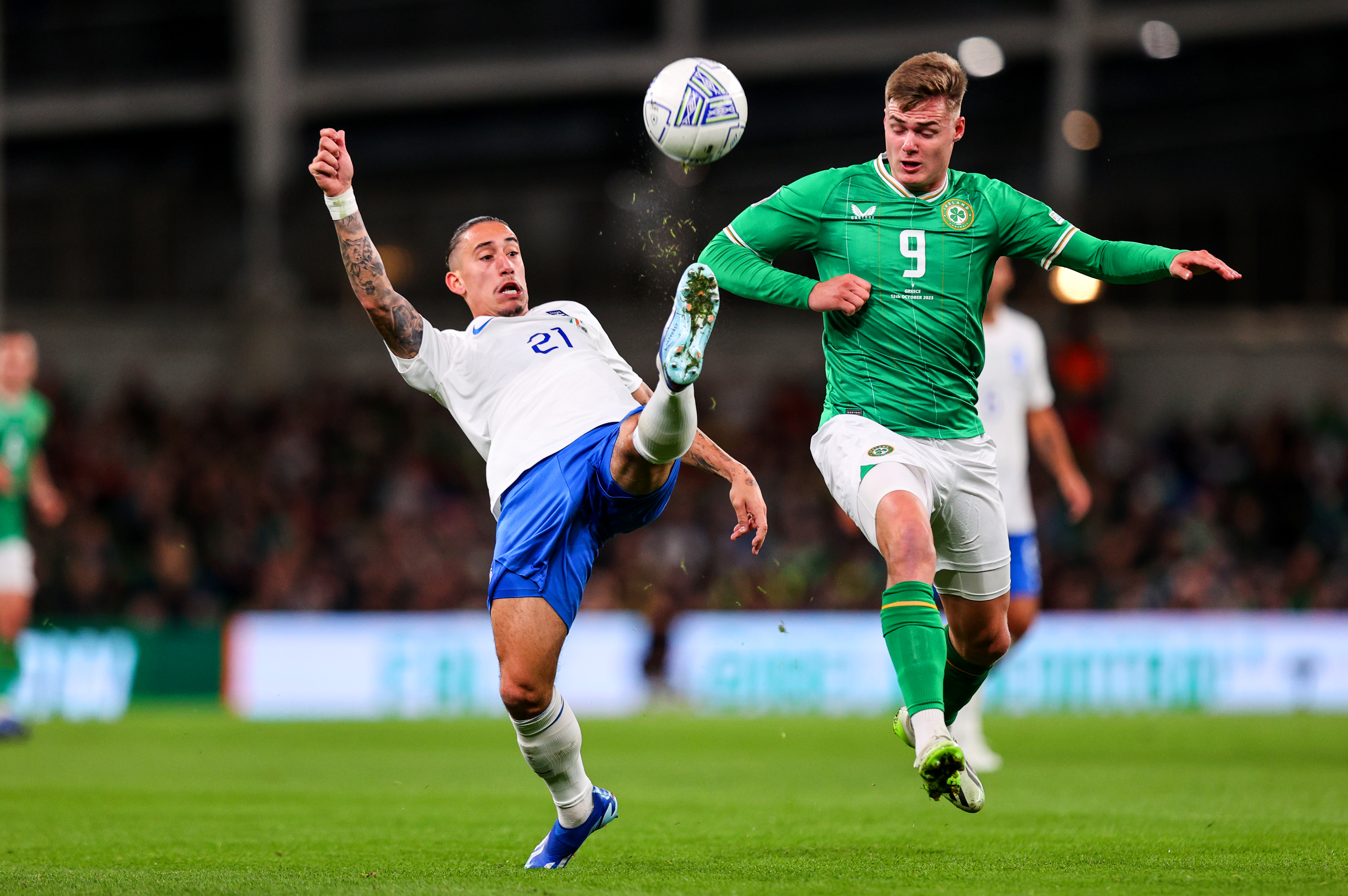 Giakoumakis timed his run into the Ireland half to perfection as Collins was caught ballwatching, allowing the striker to send the ball across the face, and while the Ireland defence had tracked back at pace, the ball was clipped back by Pelkas for the arriving Giorgos Masouras who slammed the ball past Bazunu.