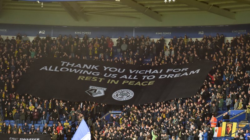 Leicester gave free food and drink to Watford fans at the King Power Stadium after they unveiled banners praising the Foxes’ late owner Vichai Srivaddhanaprabha.