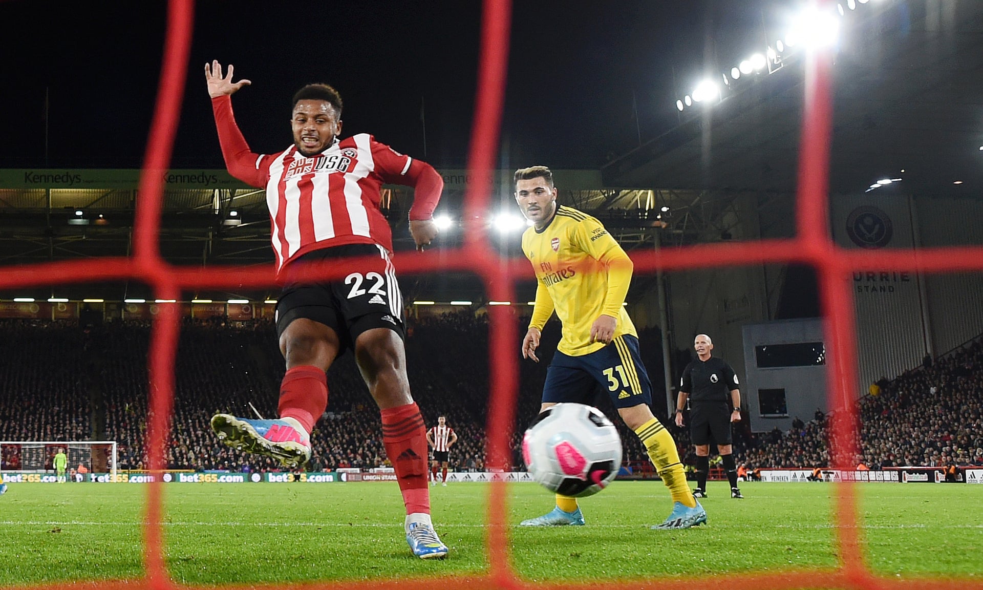 The hosts could have had a penalty when George Baldock went down under a challenge from Kolasinac, while immediately at the other end Arsenal felt aggrieved for the second time when, rather than point to the penalty spot, referee Dean booked Bukayo Saka for diving after he went to ground following a coming together with Egan.