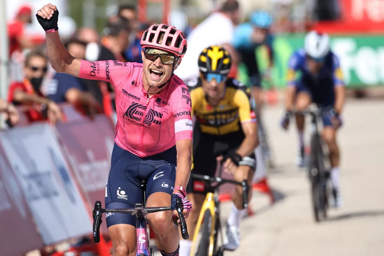 Roglič came round to kick for the line with the Slovenian getting up to the back wheel of Cort but the Danish sprinter managed to hold on and take the win with Roglič going back into red.