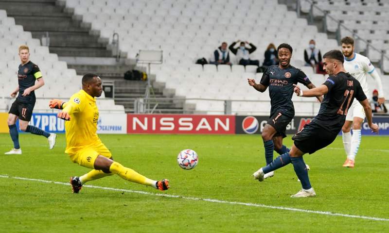 The visitors won a series of corners in the opening minutes and the fit-again Kevin de Bruyne volleyed over and had another effort blocked. Phil Foden also tested goalkeeper Steve Mandanda before City took a deserved lead on 18 minutes.