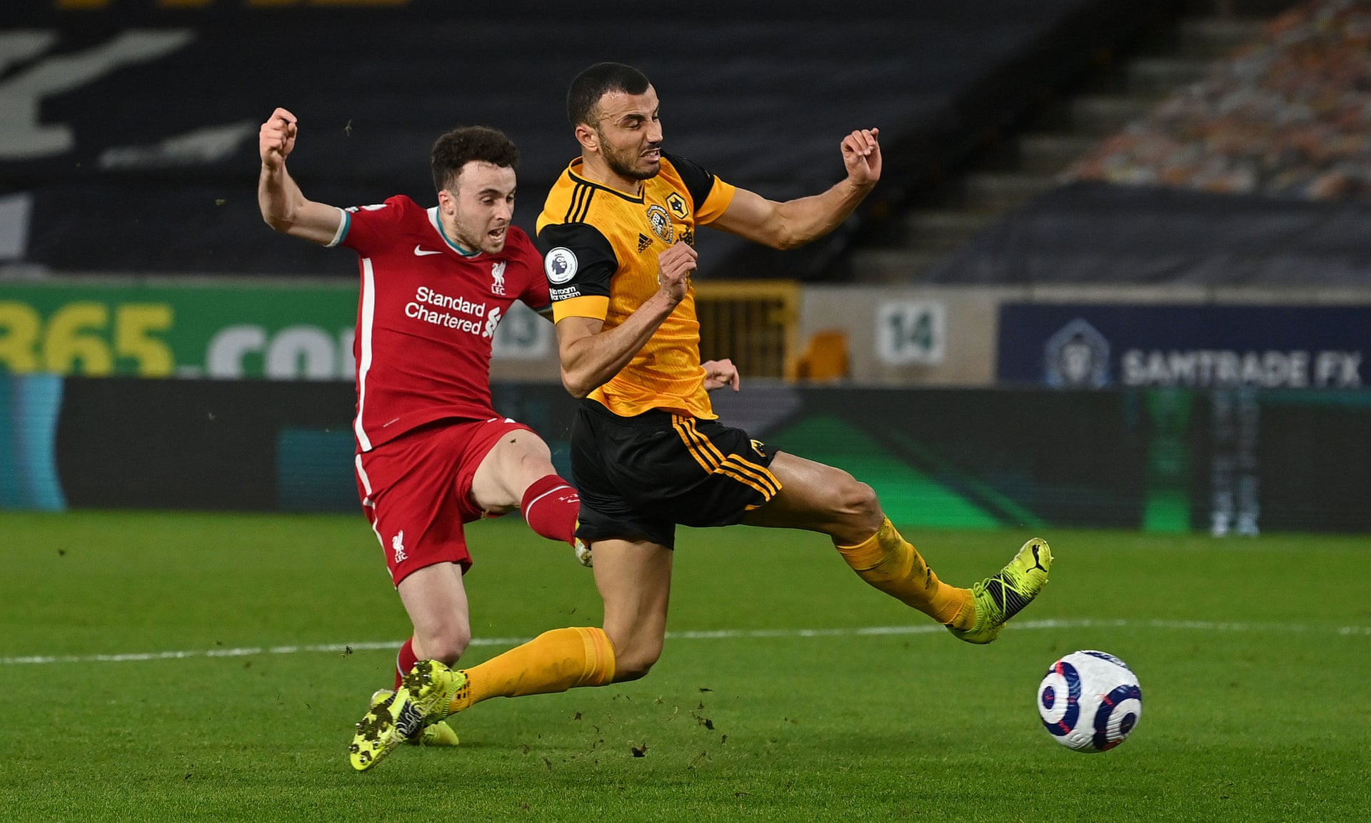 A slick one-two between Mane and Salah ended with Jota being played down the left channel, and the Portuguese marked his return to Molineux by squeezing a shot in at the near post which Patricio will feel he should have saved having got a hand to the ball.