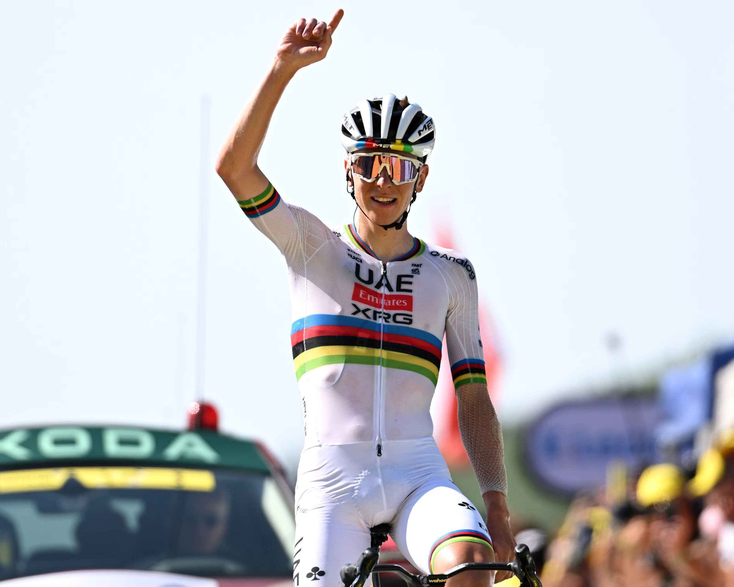 By the finish, he’d have plenty of time to celebrate, crossing the flamme rouge 1:50 up on his main rival and with the 2025 Tour de France already in his hands. Vingegaard, noticeably flagging in contrast to Pogačar’s fresh look, eventually came home at 2:10 down, his Tour de France bid possibly over on the race’s first visit to the high mountains.
