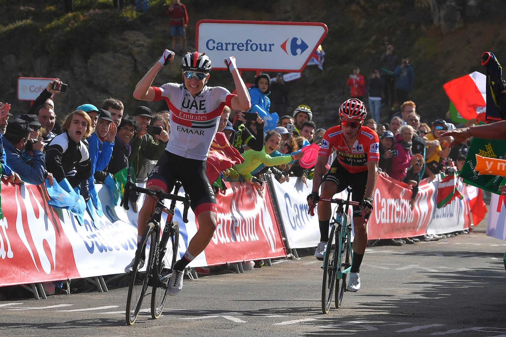 Pierre Latour, part of the break that went after 39km, was denied a second Vuelta stage win following his Stage 20 success back in 2016, when Roglic (Team Jumbo–Visma) and Pogacar (UAE Team Emirates) reeled the AG2R La Mondial leader in on the 25% ramp towards the finish on Los Machucos.