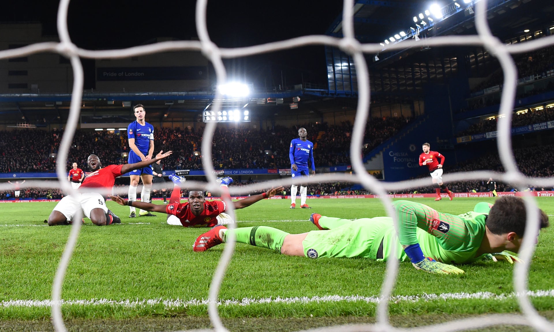 Until that moment a lively game had been evenly poised, with a host of chances at either end. Chelsea’s hopes were crushed just before halftime, however, in a speedy United counter down the right, with Rashford crossing for Pogba to head powerfully home between defenders Cesar Azpilicueta and Antonio Rudiger.