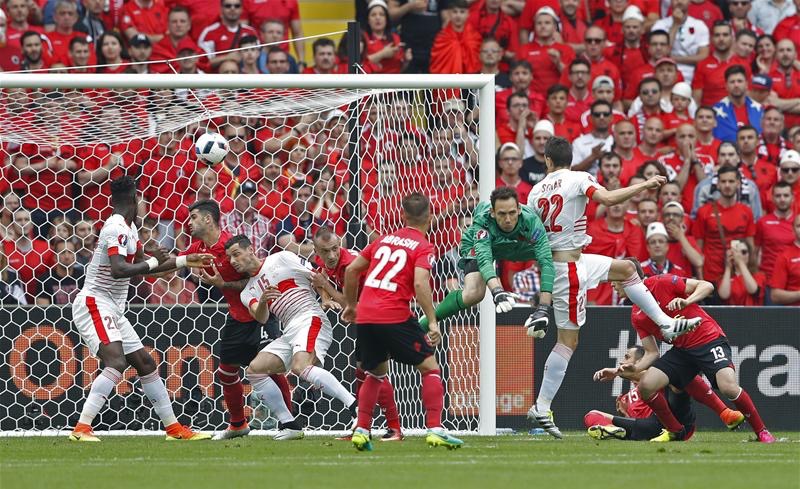 The favourites coming into the game Switzerland got off to a blistering start from the get go. A fifth minute corner allowed Swiss star Xherdan Shaqiri to whip cross. Center-back Schar rose above the rest to head into an open net – Albania’s goalkeeper Etrit Berisha had raced out to clear the danger but missed the ball totally.