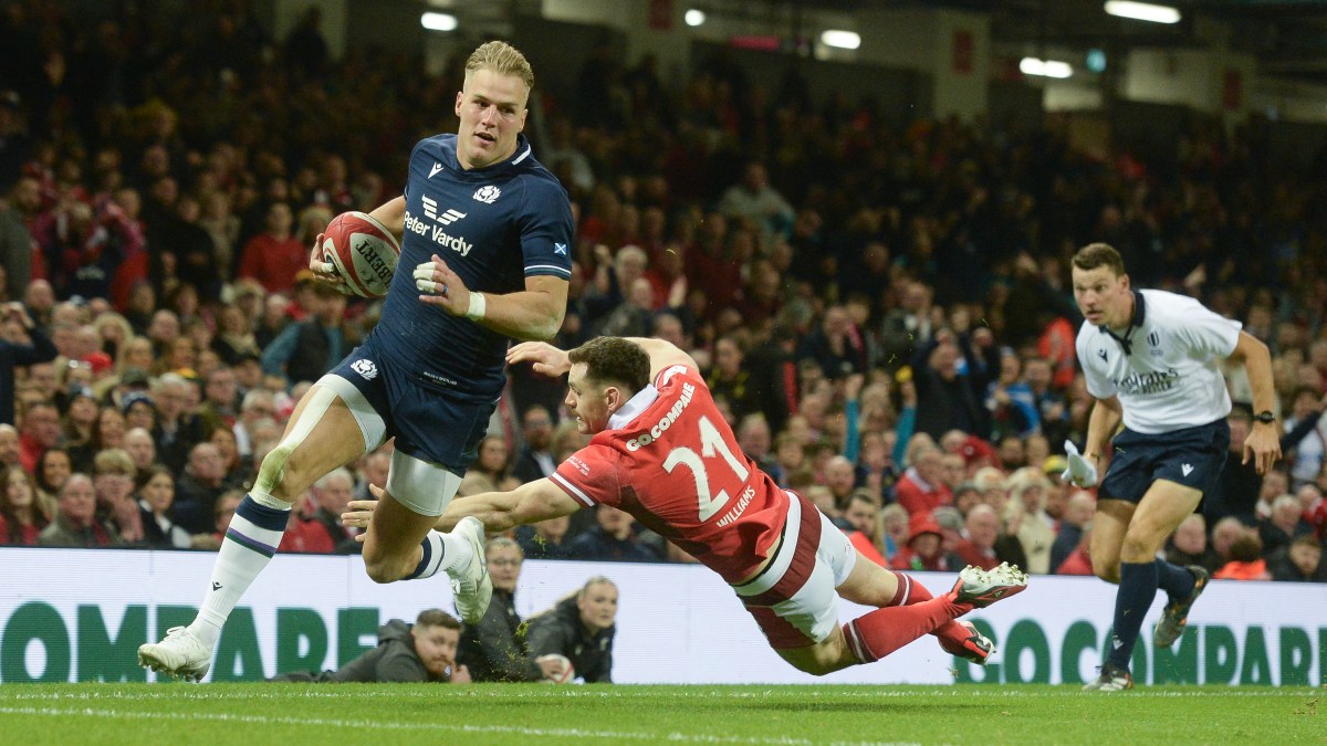 After receiving a one-handed offload from Russell, the Scottish winger accelerated around Tomos Williams, arching his way past an outreached hand to cross over in the right corner.