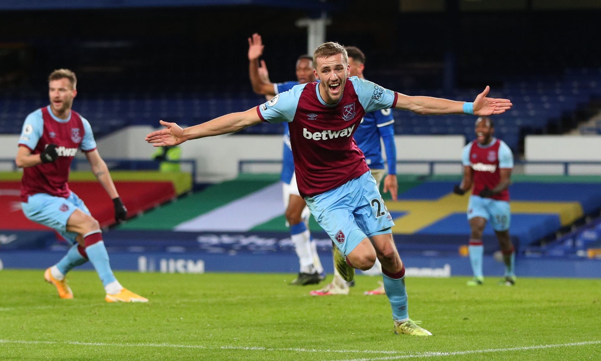 However, having done their primary job of not conceding against an Everton team who had four wins on the bounce, the Hammers benefited from some good fortune when Aaron Cresswell’s mis-hit shot deflected off Yerry Mina and into the path of Soucek, who could not miss.