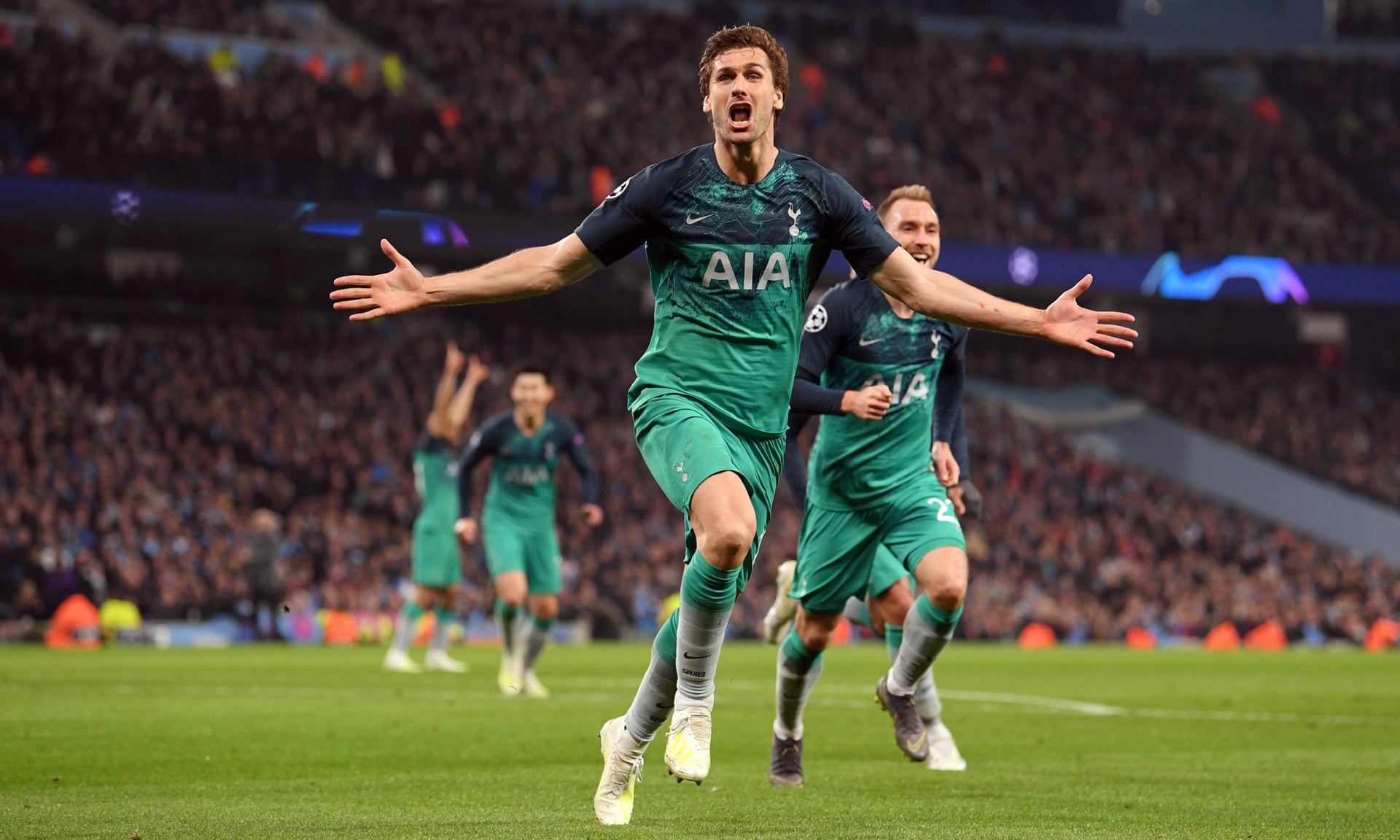 After four goals were scored inside the first 11 minutes, Tottenham lost 4-3 to Manchester City but won on away goals in one of the most pulsating games of football in history to seal their first ever place in the Champions League semifinals.