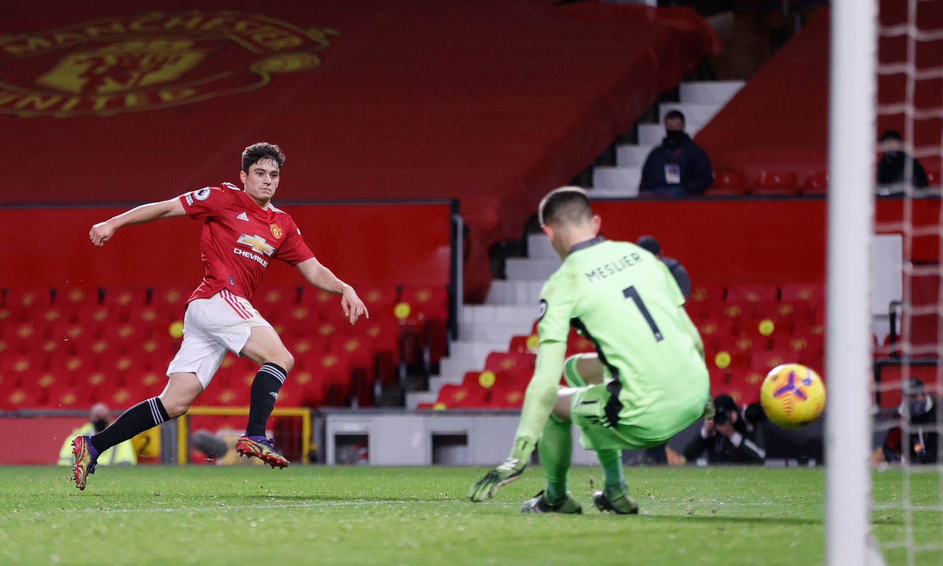 Leeds pulled one back through Liam Cooper’s header from their own corner (42), with five goals and 18 shots in a chaotic first half, but Man Utd regained their four-goal lead as Daniel James shot through the legs of Illan Meslier (66) following a counter-attack.
