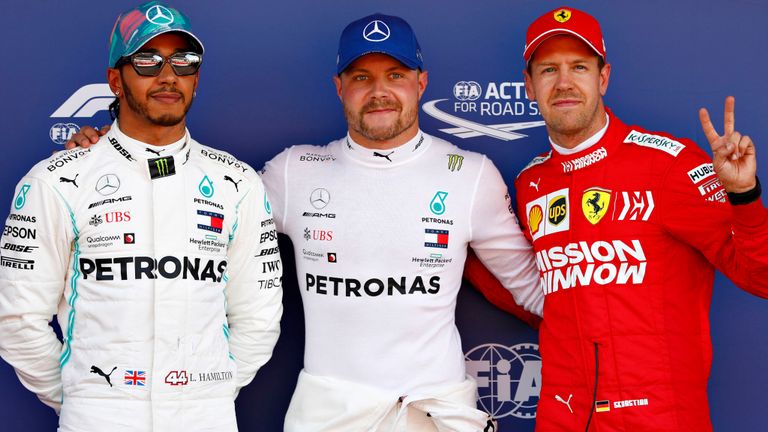 Red Bull’s Max Verstappen took fourth to split the scarlet cars, beating Charles Leclerc, who was carrying suspected floor damage on his SF90 after heavy contact with the kerbs in Q2. Verstappen’s team mate Pierre Gasly was sixth, ahead of the Haas duo of Romain Grosjean and Kevin Magnussen, and the Toro Rosso of Daniil Kvyat.
