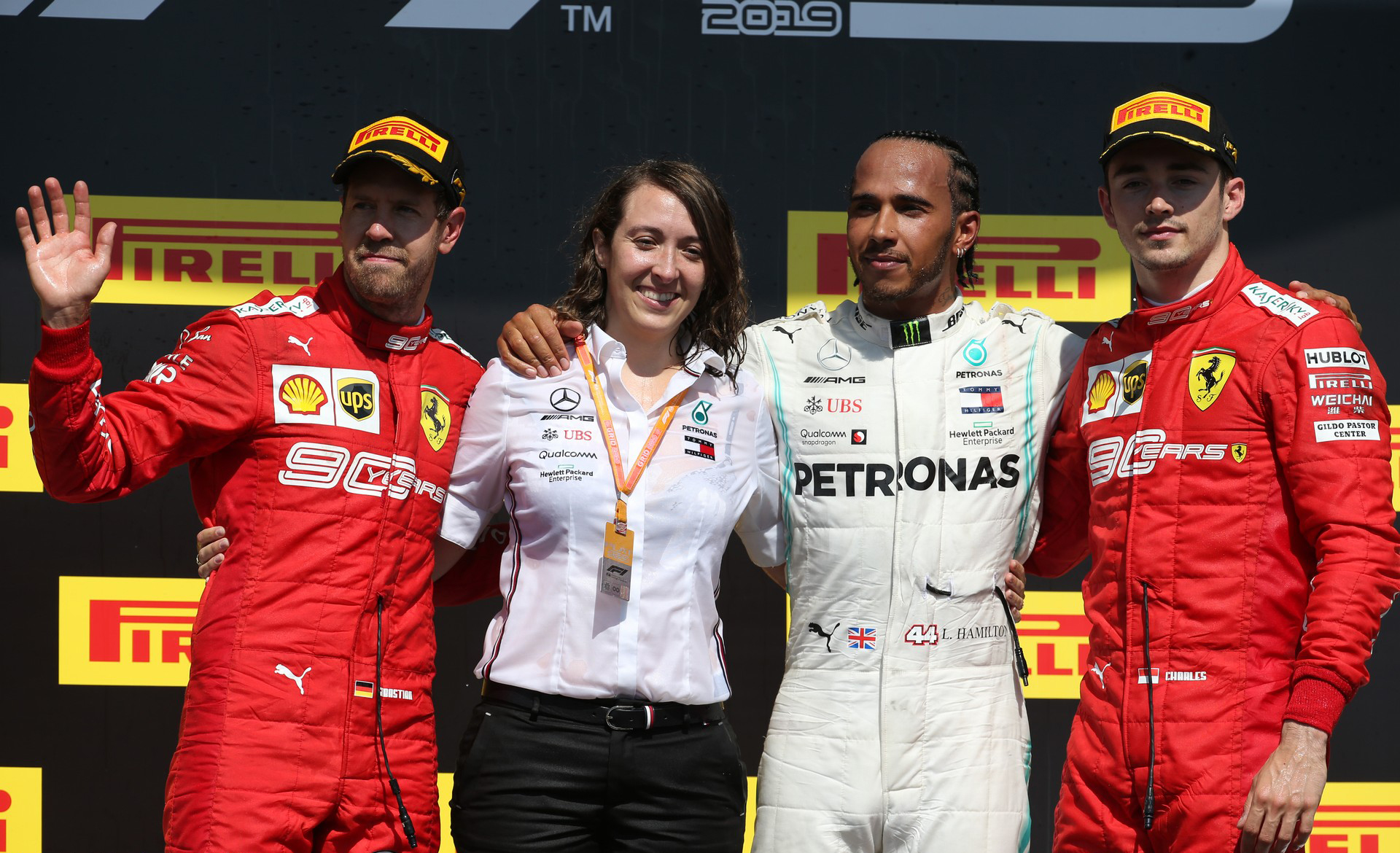 The drama wasn’t done when the chequered flag fell, however, a disgusted Vettel – who’d argued his case in the final laps over team radio – parking his car in the pit lane before walking to Ferrari hospitality. Having missed the immediate post-race interviews, Vettel, having been voted Driver of the Day by race fans, eventually made his way to the podium – but not before he’d put the second-placed board in front of his vacant parc ferme spot in front of Hamilton’s Mercedes.