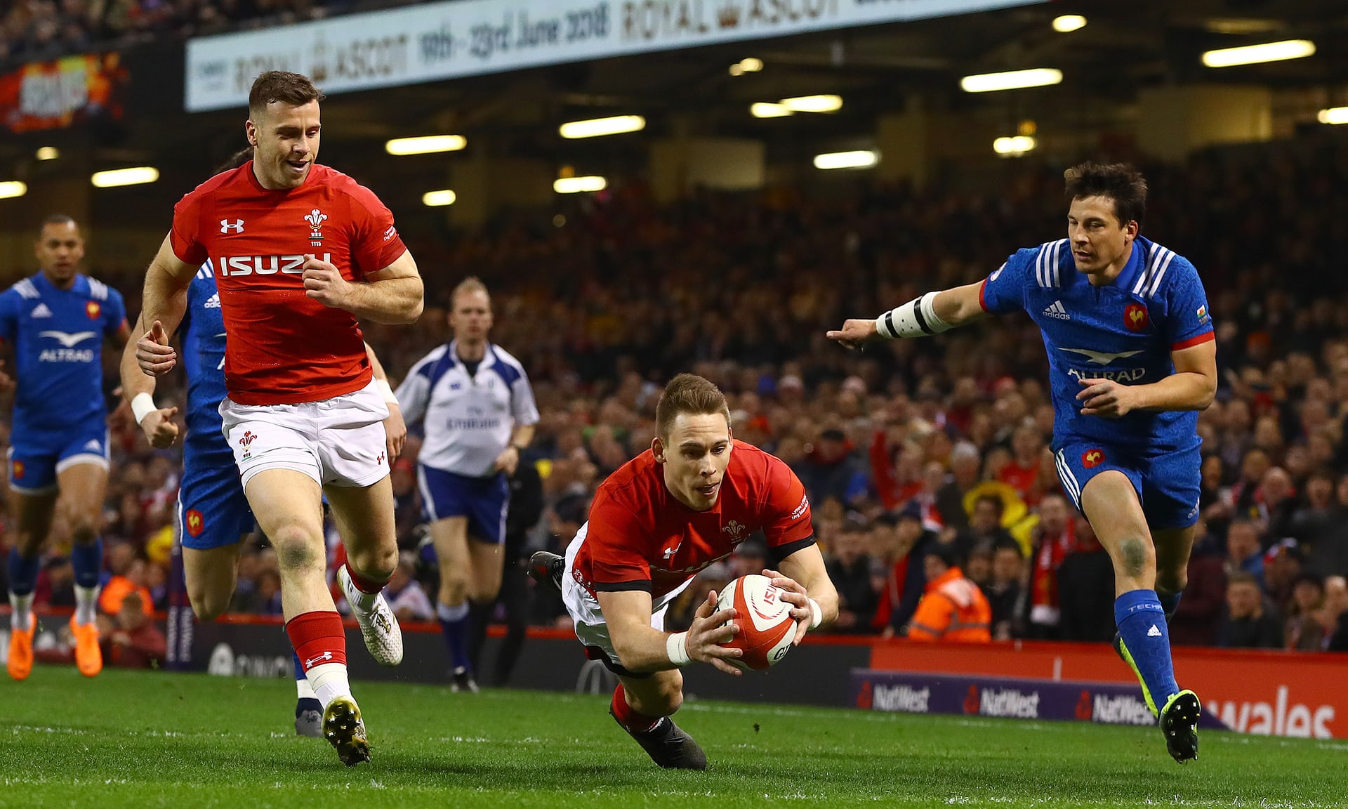 The visitors drew first blood, with Trinh-Duc slotting a drop goal after just three minutes, but Wales hit back with a try straight from the restart.
