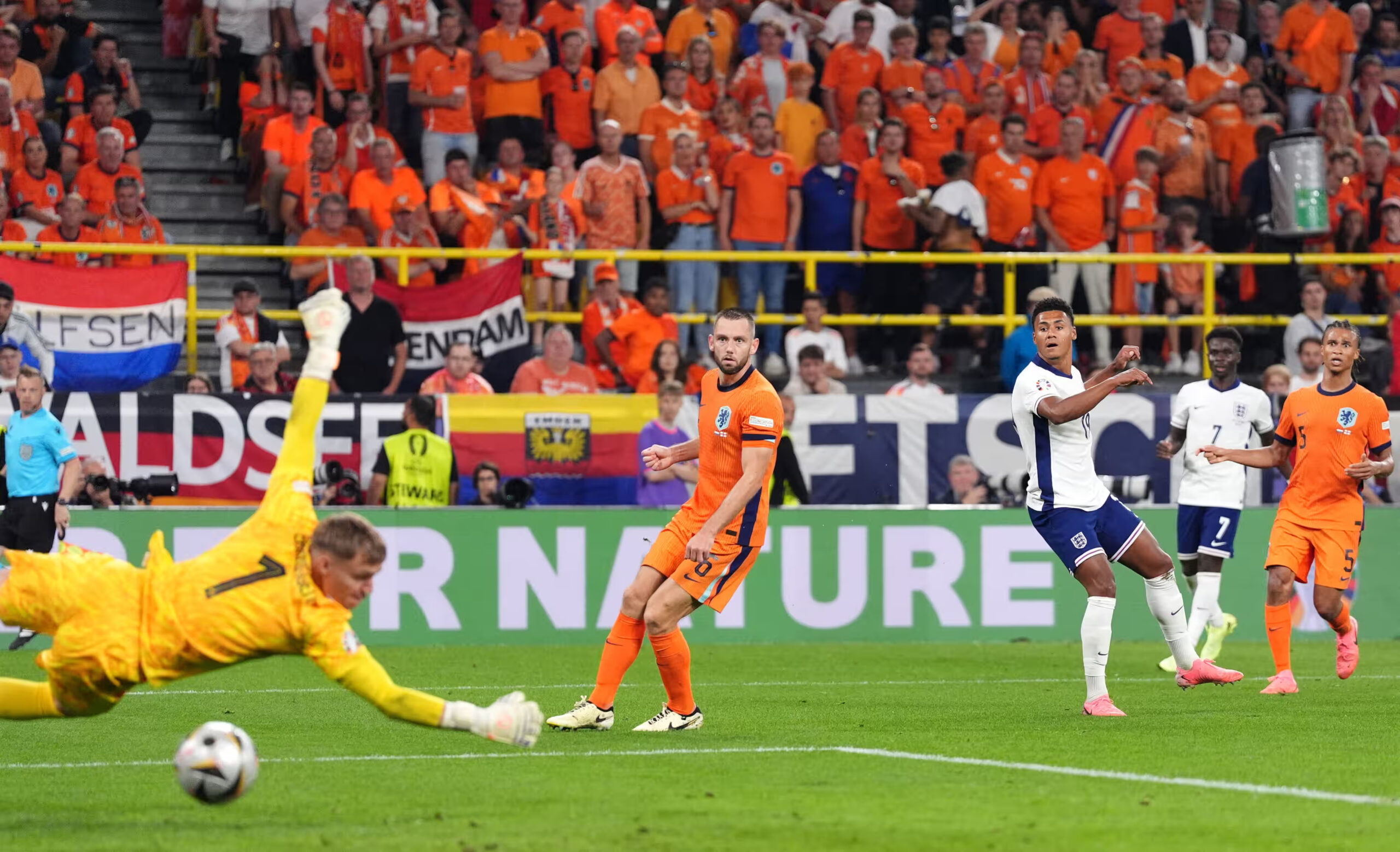 The angle looked too tight but the confident striker turned before Stefan De Vrij could react, lashing a low effort past Verbruggen in front of the stunned Dutch fanbase.